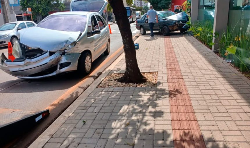 A colisão envolveu um Volkswagen Santana e um Citroën Picasso. Com o impacto, foram registrados danos materiais nos automóveis.