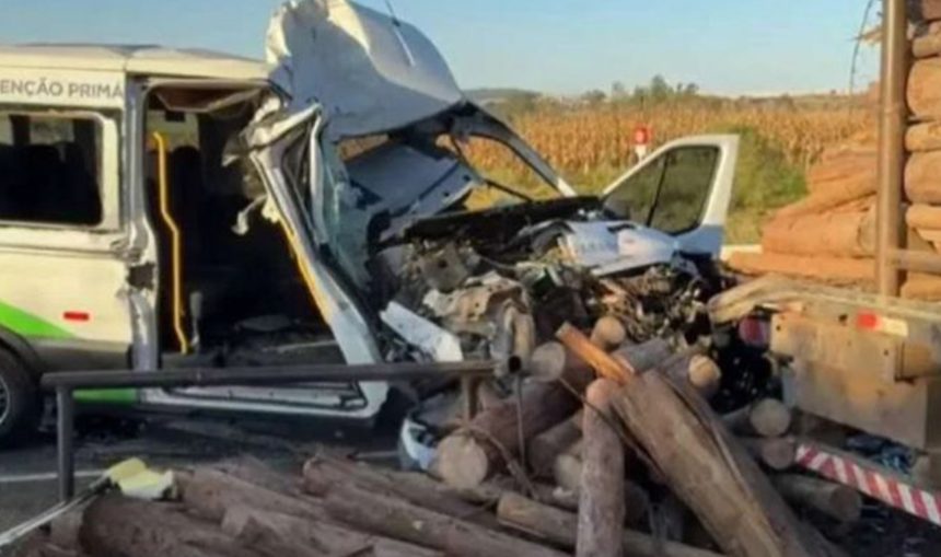 Na manhã desta quarta-feira (6), uma van da Secretaria de Saúde de Ribeirão do Pinhal se envolveu em um acidente com um caminhão carregado de madeira na PR-862, Contorno Norte de Ibiporã.