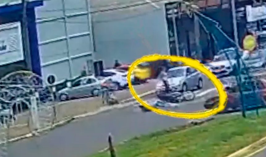 Uma adolescente de 17 anos ficou ferida após a colisão entre um patinete elétrico e uma motocicleta na tarde do dia 1, no cruzamento da Rua Rouxinol com a Avenida Arapongas. Imagens de câmeras de segurança registraram o momento da batida.