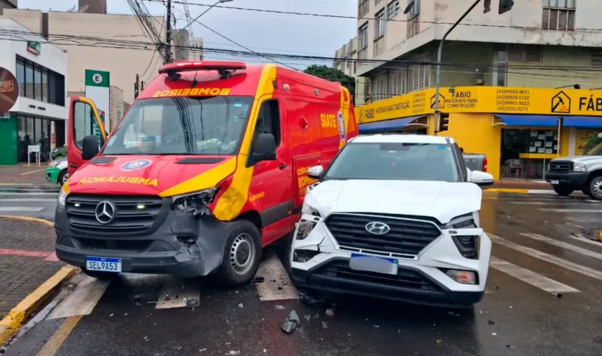 Uma ambulância do Serviço Integrado de Atendimento ao Trauma em Emergência (Siate) se envolveu em um acidente na tarde desta segunda-feira (22), por volta das 12h, na Rua Nagib Daher, região central de Apucarana.