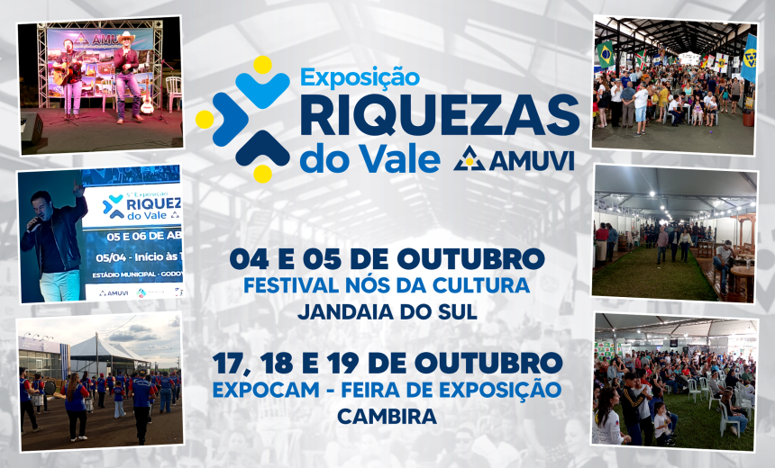 A Associação dos Municípios do Vale do Ivaí (AMUVI) promoverá em outubro duas importantes edições da Exposição “Riquezas do Vale”, evento que valoriza a cultura, o turismo e a produção regional.