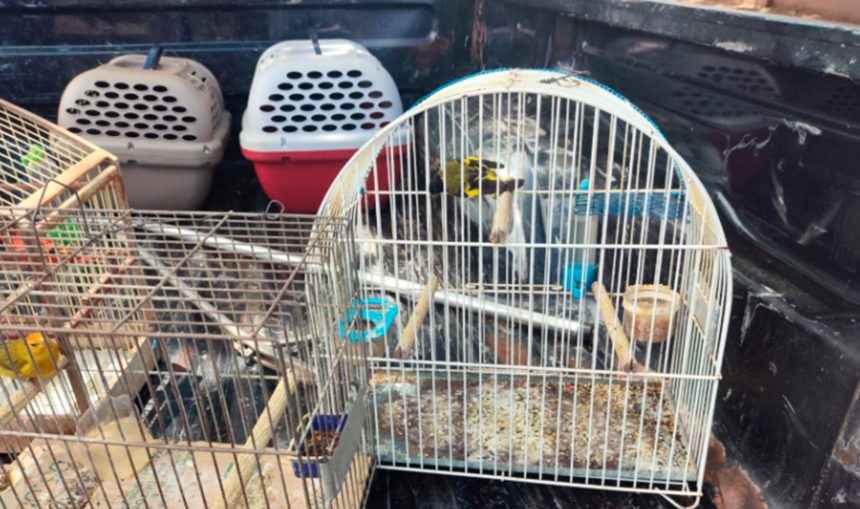 A ocorrência foi registrada na sexta-feira (7). Foram apreendidos dois canários-da-terra e um pintassilgo, encaminhados para atendimento veterinário e reabilitação antes de serem devolvidos à natureza.