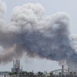 As explosões e incêndios em instalações ligadas ao combustível liberaram grandes quantidades de fumaça e gases poluentes na atmosfera, formando uma nuvem densa que reduziu drasticamente a luminosidade natural.