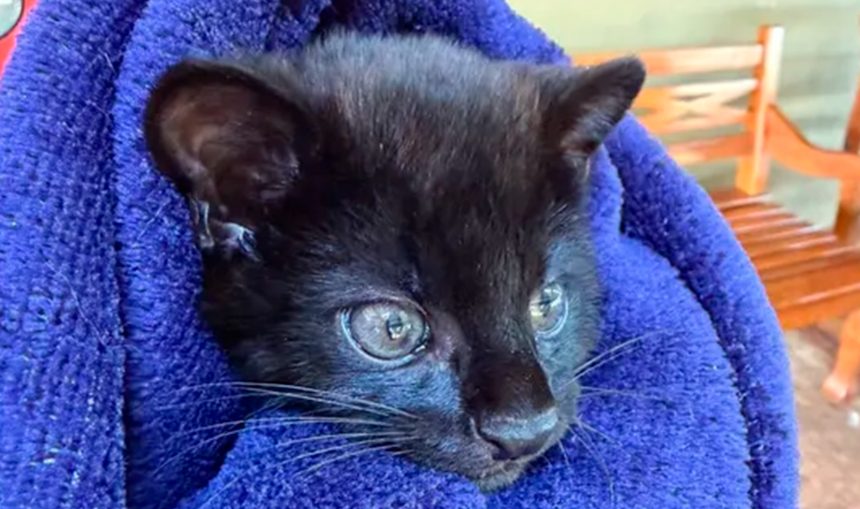 Filhote raro de gato-do-mato melânico é resgatado após atropelamento no norte do Paraná