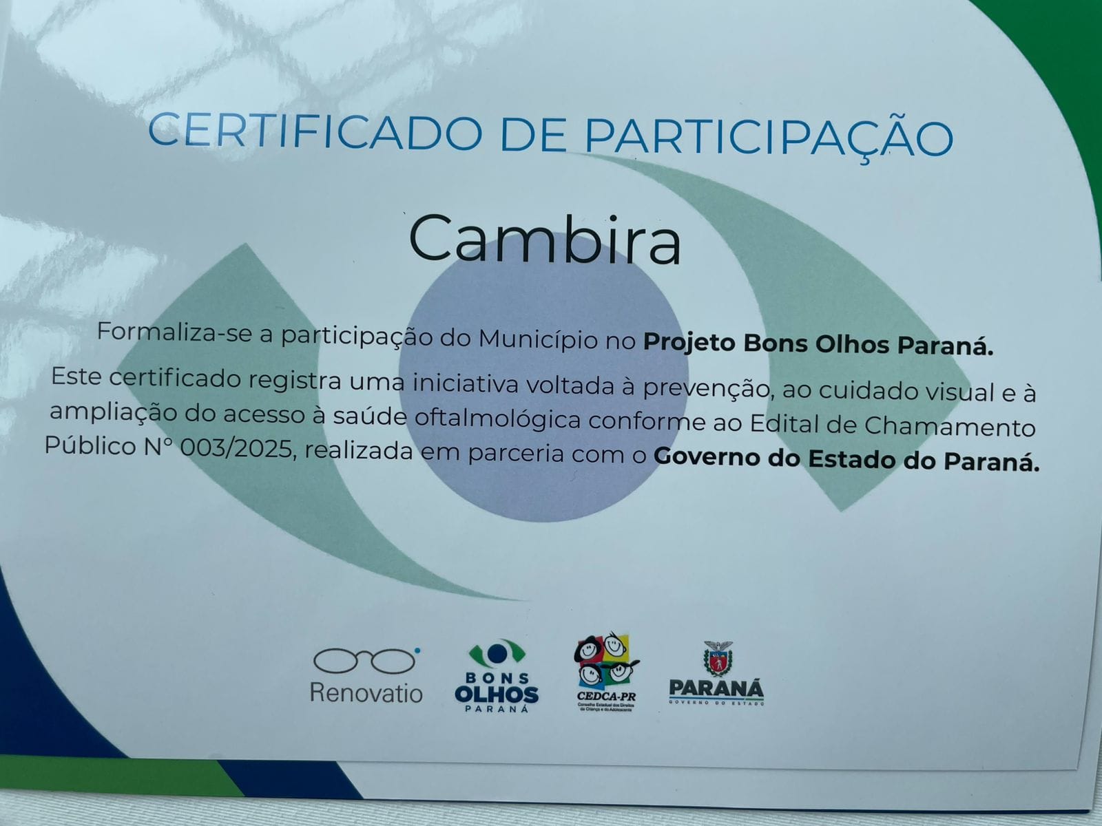 O município de Cambira foi contemplado na segunda fase do Programa Bons Olhos Paraná, iniciativa do Governo do Estado que oferece consultas oftalmológicas e entrega gratuita de óculos para crianças e adolescentes da rede pública de ensino.
