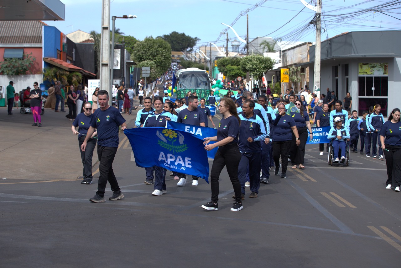 Na manhã desta sexta-feira (05), Cambira promoveu a Passeata Cívica em alusão à Semana da Pátria, encerrando com grande participação a programação especial do município. O evento reuniu todas as escolas municipais, estaduais, CMEIs e entidades, além da presença especial do 30º Batalhão de Infantaria Mecanizado (BIMec) de Apucarana, que abrilhantou ainda mais o desfile. Também participaram a Fanfarra do Clube Irmão Caçula de Califórnia.