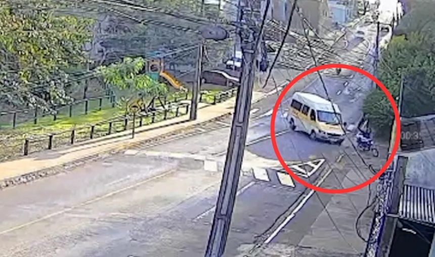 Nas imagens, é possível ver que os dois veículos seguiam na mesma pista. A van escolar acionou a seta para virar à esquerda, em direção à Rua Cruzeiro do Sul, mas não percebeu que o motociclista realizava uma ultrapassagem. Na sequência, ocorreu a batida.