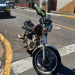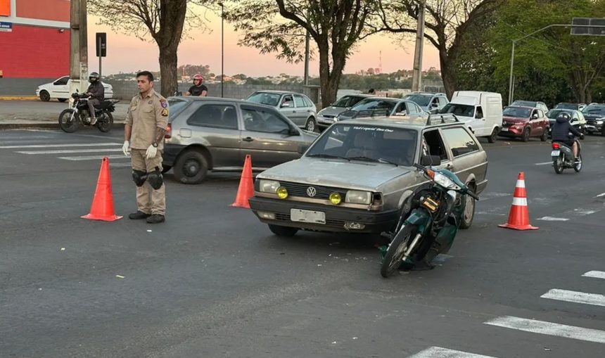 As imagens mostram a moto da vítima colidindo com uma Volkswagen Parati no cruzamento com a Rua Firman Neto e a Avenida Rio de Janeiro, em frente à AutoZone.