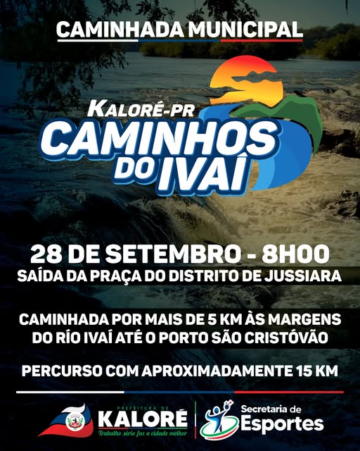 No próximo domingo (28), às 8h, será realizada uma caminhada ecológica em Kaloré. A saída acontece na Praça do Distrito de Jussiara, com percurso de aproximadamente 15 km, incluindo mais de 5 km às margens do Rio Ivaí até o Porto São Cristóvão.