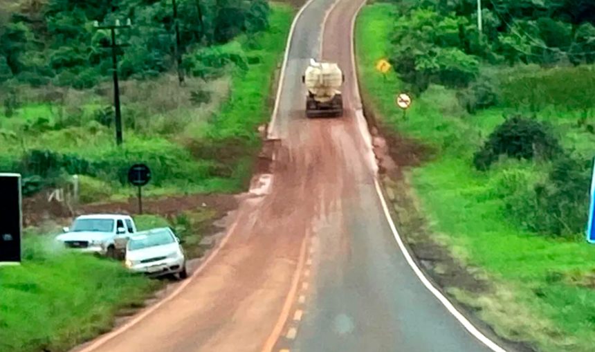 No trecho do bairro Lajeadão, a cerca de 10 quilômetros da cidade, a chuva deixou lama sobre a pista. Uma caminhonete, conduzida por Fernando Bruneli, perdeu o controle e saiu da rodovia. Não houve feridos, mas o veículo teve danos mecânicos. A orientação é para que motoristas redobrem a atenção em trechos com acúmulo de lama após as chuvas.