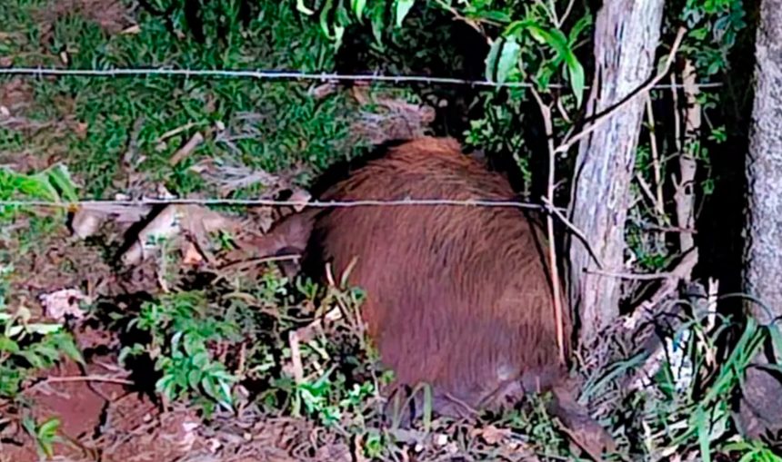 Testemunhas relataram que um carro ainda não identificado atingiu dois animais — aparentemente mãe e filhote — e fugiu em seguida. Uma das capivaras morreu no local.