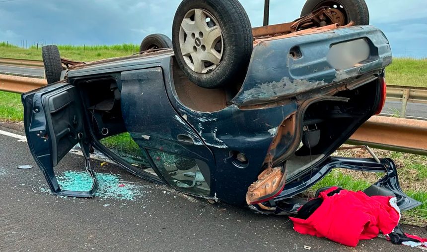 Veículo capotou e ficou destruído