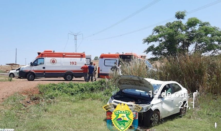 Três pessoas — entre elas uma criança de 4 anos — ficaram feridas em um capotamento registrado na manhã desta quarta-feira (15), na PRC-466, entre Jardim Alegre e Lidianópolis.