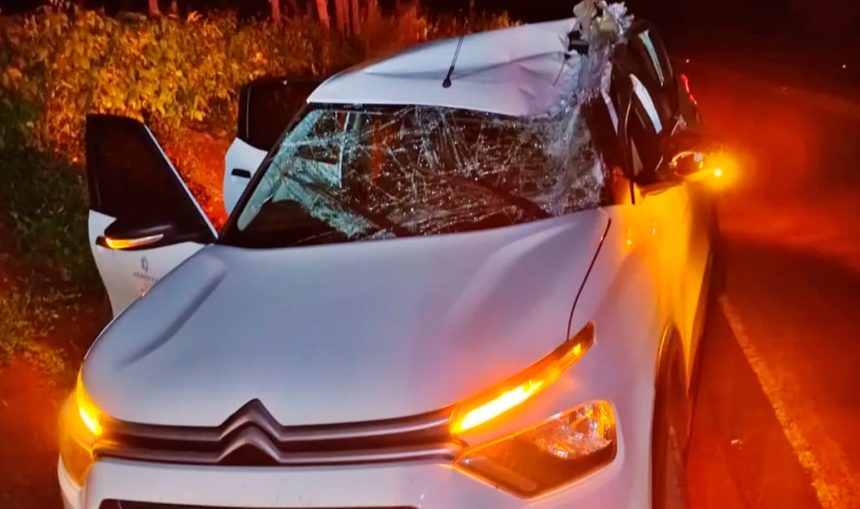 O veículo envolvido é um Citroën C3 Live 1.0, ano/modelo 2025, branco, emplacado em Londrina e identificado com a inscrição “Agrotech – a serviço da Copel”.