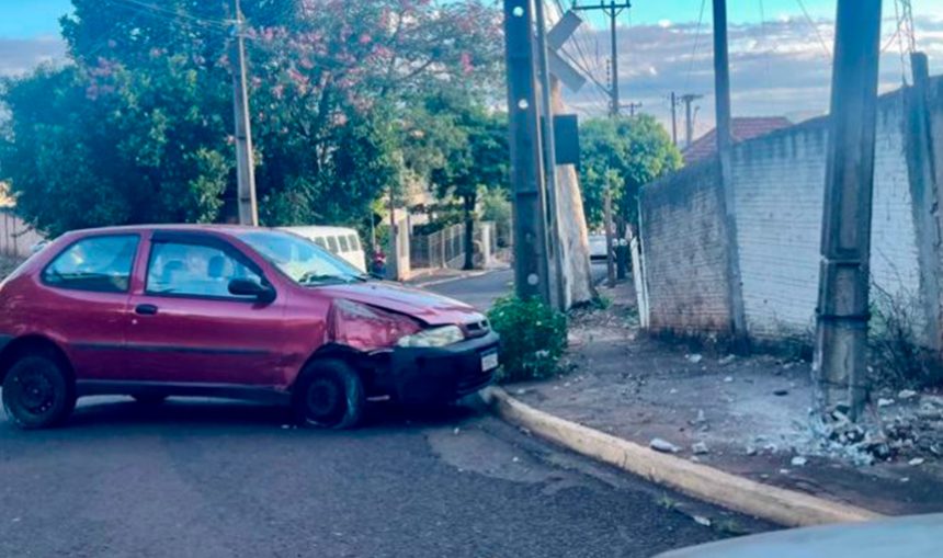 Um veículo colidiu contra um poste de energia elétrica na manhã do dia 23, na Rua Faustino Bulgarão, nas proximidades da linha férrea.