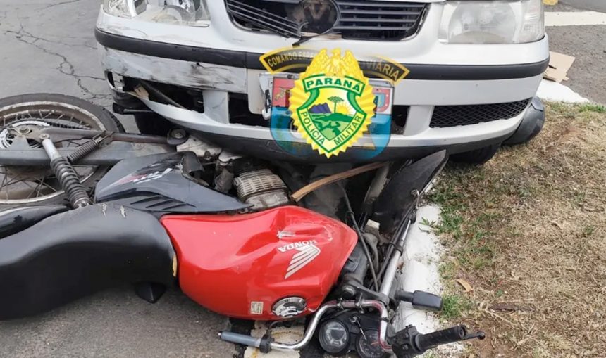Um acidente envolvendo um carro e uma motocicleta foi registrado na tarde desta quarta-feira (1º), na PRC-272, no entroncamento com a PR-422, em Tomazina. A Polícia Rodoviária Estadual (PRE) atendeu a ocorrência por volta das 16h15.