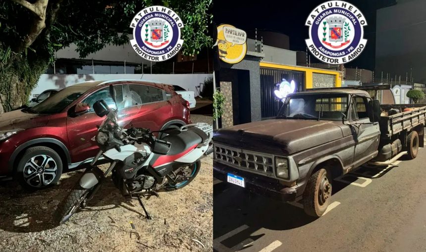 Durante a varredura no imóvel, também foram localizados um Honda HR-V Touring vermelho, roubado em Arapongas em 2023 e com placas trocadas, além de uma motocicleta BMW GS 650 branca, igualmente roubada no município. No interior da residência, a Guarda Municipal encontrou ainda diversos equipamentos de construção civil, galões de fungicida agrícola, máquina de lavar e outros objetos de origem suspeita.