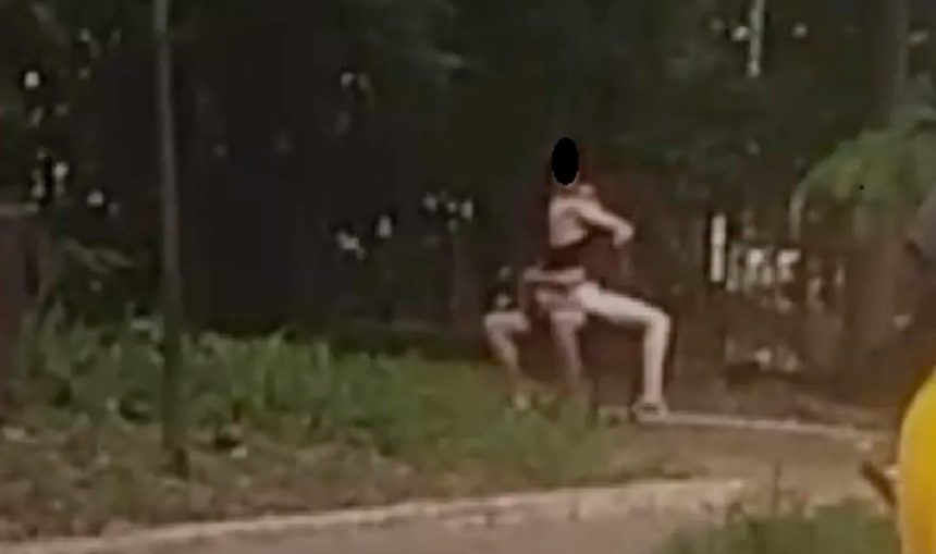 Um casal foi flagrado mantendo relações sexuais em um banco do Bosque Central de Londrina na tarde de segunda-feira (8). Um morador registrou as imagens, que mostram a mulher nua no colo do homem em plena luz do dia.