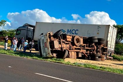 Caminhão tomba na BR-376 e motorista sofre escoriações entre Jandaia do Sul e Cambira