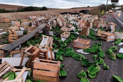 Um caminhão carregado com bananas tombou na manhã desta quarta-feira (5) na…
