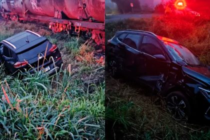 Colisão entre carro e trem deixa dois feridos em acesso a Cambira