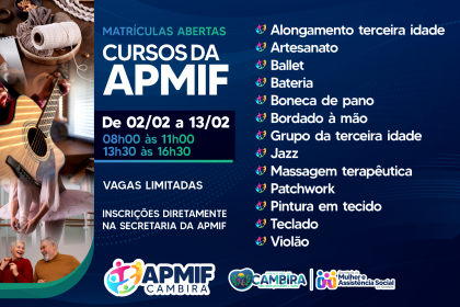 A APMIF de Cambira está com matrículas abertas para diversos cursos gratuitos…