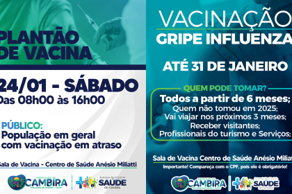 Prefeitura de Cambira reforça vacinação contra a gripe Influenza e promove plantão especial neste sábado
