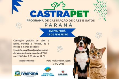 O município de Ivaiporã receberá nos próximos dias o programa CastraPet, iniciativa…