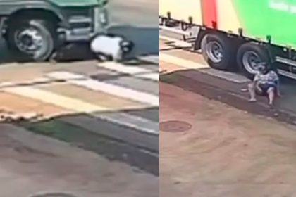 Motociclista quase é atropelada por caminhão em acidente registrado por câmera em Arapongas