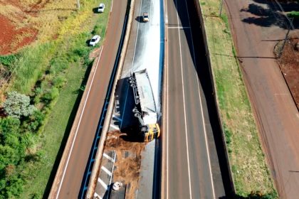 Caminhão tomba na PR-445 e deixa motorista ferido em Cambé