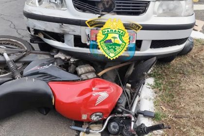 Carro e motocicleta colidem em cruzamento da PRC-272 com PR-422, em Tomazina