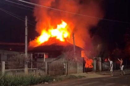 Casa de madeira é destruída por incêndio de grandes proporções em Rolândia