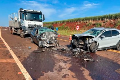 Colisão frontal na BR-369 deixa idoso morto e jovem em estado grave em Cambará
