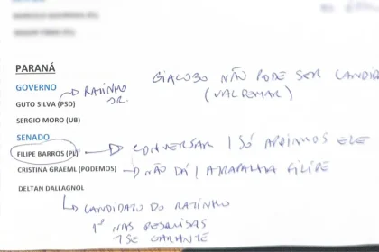 Documento traz Guto Silva (PSD) e Sergio Moro (União Brasil) como possíveis…