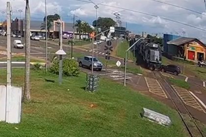 Motorista fica ferida após carro ser atingido por trem em Arapongas
