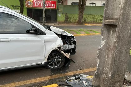 Idosa passa mal, perde controle e atinge poste em Apucarana
