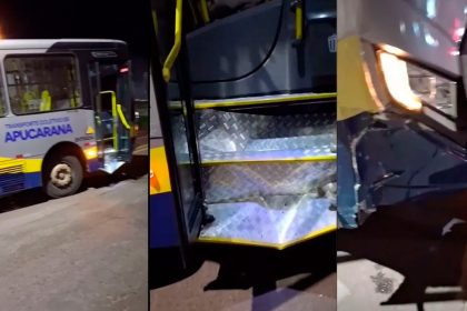 Acidente entre ônibus e carro assusta passageiros no centro de Apucarana