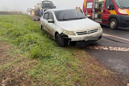 Acidente envolveu quatro carros e uma moto na BR-376 em Jandaia do Sul
