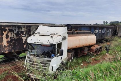 Carreta é atingida por trem em passagem de nível na saída para Mandaguari