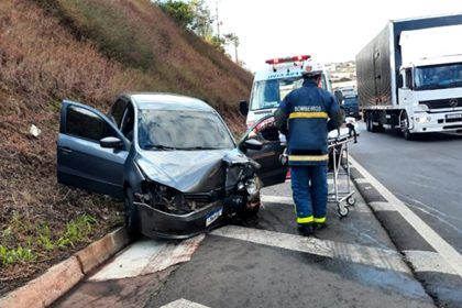 Motorista fica ferida após colidir carro em mureta no acesso à BR-376, na saída para Mandaguari