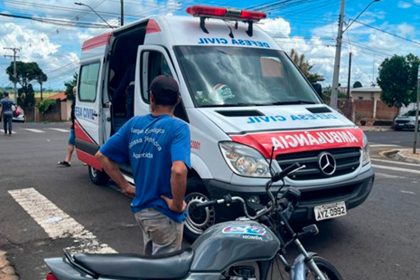 Motociclista é encaminhado ao hospital após acidente no Centro de Jandaia do Sul