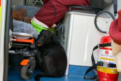 Um cão chamou atenção ao entrar em uma ambulância da CCR PRVias…
