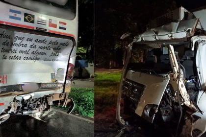 Grave colisão entre caminhão e ônibus deixa motorista ferido na PR-317, em Floresta