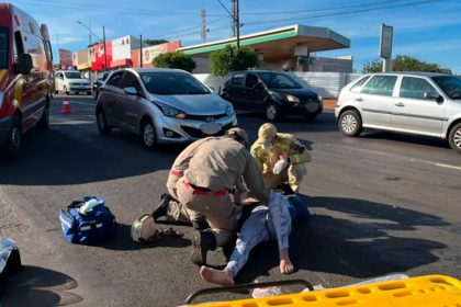 Garupa fica ferida em colisão entre carro e moto na Avenida Minas Gerais
