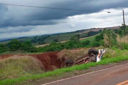 Motorista fica ferido após caminhonete capotar na PR-170, em Borrazópolis