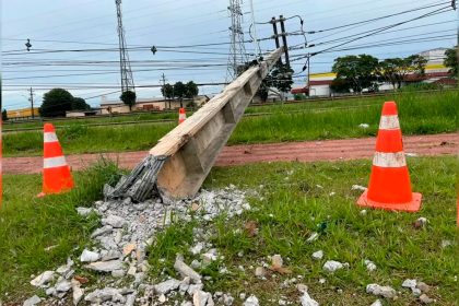Poste derrubado após acidente deixa empresas sem energia no Parque Industrial Norte de Apucarana