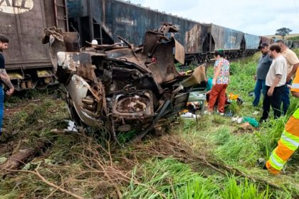 Caminhão é partido ao meio após ser atingido por trem em Marilândia do Sul