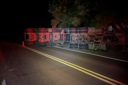 Tombamento de caminhonete deixa dois feridos na PR-445 entre Londrina e Tamarana