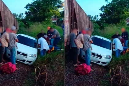 Carro é atingido por trem durante travessia e deixa mulher ferida em Marilândia do Sul