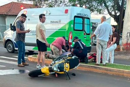 Motociclista fica gravemente ferido em colisão com Fusca no centro de Faxinal